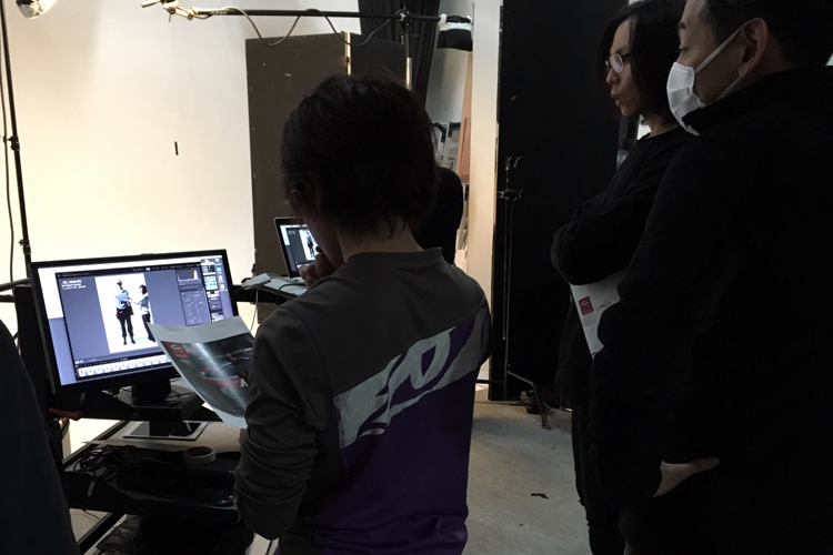 撮ったその場でデザイナーや制作担当がチェックしていきます。