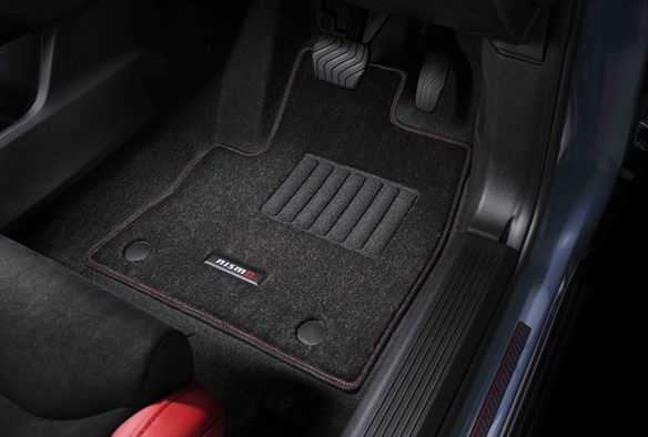 「NISMO」ロゴプレートを配した、スポーティ感と高級感あふれるフロアマットです。