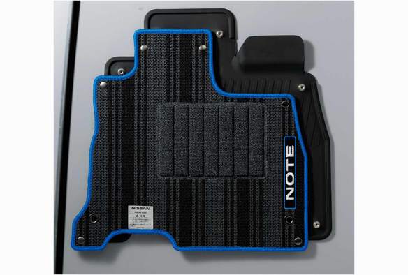 e-POWERのイメージカラーである鮮やかなブルーの縁取りを施したe-POWER車専用デュアルカーペットです。