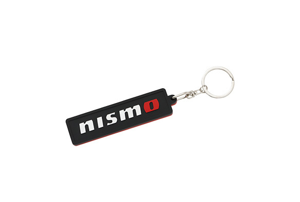 立体凸ロゴとブラック×レッド 二層構造のリバーシブル キーリング。